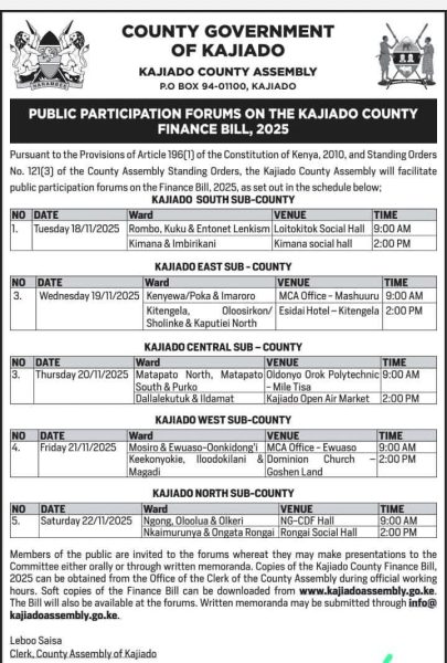 November 13, 2025 In Uncategorized 0 Participate in the Kajiado County Finance Bill, 2025 Discussion!